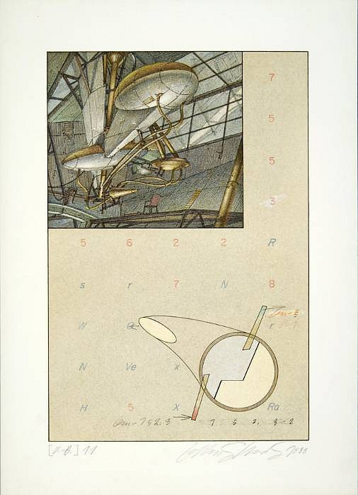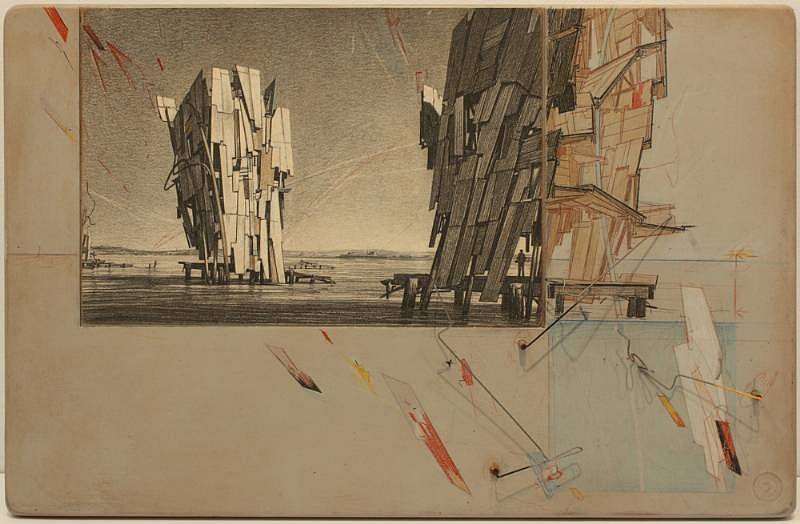 Lebbeus Woods, Aerial Paris Series, #6 -- Detail of Ion Collecting Sail, 1989